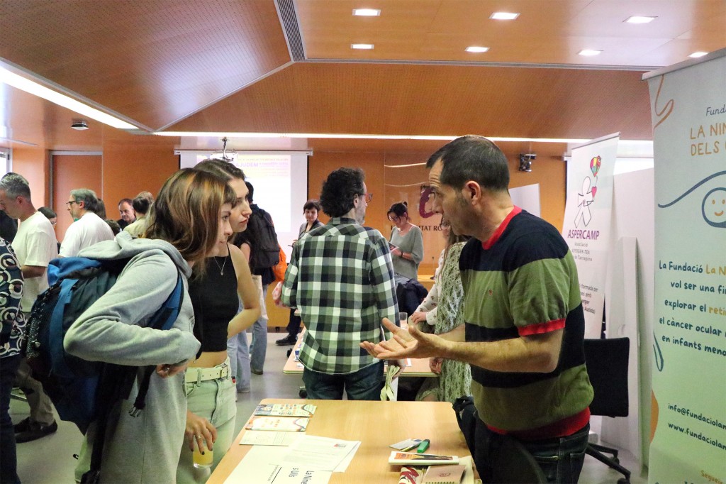 Desde el otro lado de la mesa, Anna, directora de la Residencia Trèvol de la Fundació La Muntanyeta, destacaba el papel de los estudiantes más allá de las puertas de la Universidad: «Necesitamos a los estudiantes; siempre aportan ideas, nuevos conocimientos, están muy motivados y nos ayudan a ver las cosas desde una perspectiva diferente». Si bien es el primer año que vienen al Mercado de Proyectos Sociales, tienen contacto con la URV y su estudiantado a través de las prácticas externas. Están tan contentos que no dudaron en participar en el Programa de Aprendizaje Servicio cuando se les hizo la propuesta.