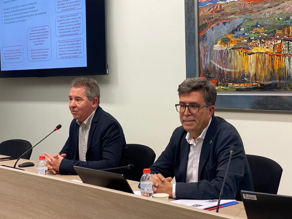 Finalment, l’estudi emplaça els organitzadors a professionalitzar la comunicació digital de la Festa —actualitzant la pàgina web amb antelació suficient i col·laborant amb creadors de contingut audiovisual— i recomana que els resultats siguin presentats davant de les administracions supralocals. 2,7 milions dels 10 milions d’euros d’impacte total es generen fora de Tortosa, a la resta de les Terres de l’Ebre, la qual cosa justifica el suport institucional supramunicipal a l’esdeveniment.
