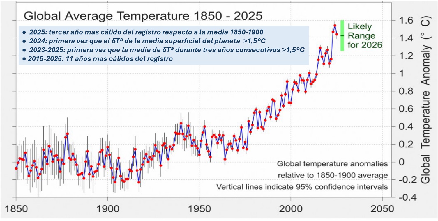 El desenterrament d’aquesta herència ha permès multiplicar el consum energètic global per sis vegades des de 1950 fins ara, degut a la multiplicació per tres de la població i de 14 vegades el PIB mundial. Però això ha comportat un clar aspecte negatiu que ha estat l’augment de les emissions atmosfèrics de CO2, que s’han multiplicat quasi per 20 des del 1900, i com científicament està ben demostrat, aquest és el principal responsable del canvi climàtic, degut a l’escalfament global. Aquest ha tingut una mitjana global d’un augment de l’1.5ºC en els darrers 30 anys, fenomen clarament antropogènic, i en algunes regions com les polars, o fins i tot la península Ibèrica, s’estan superant clarament els 2ºC d’augment.