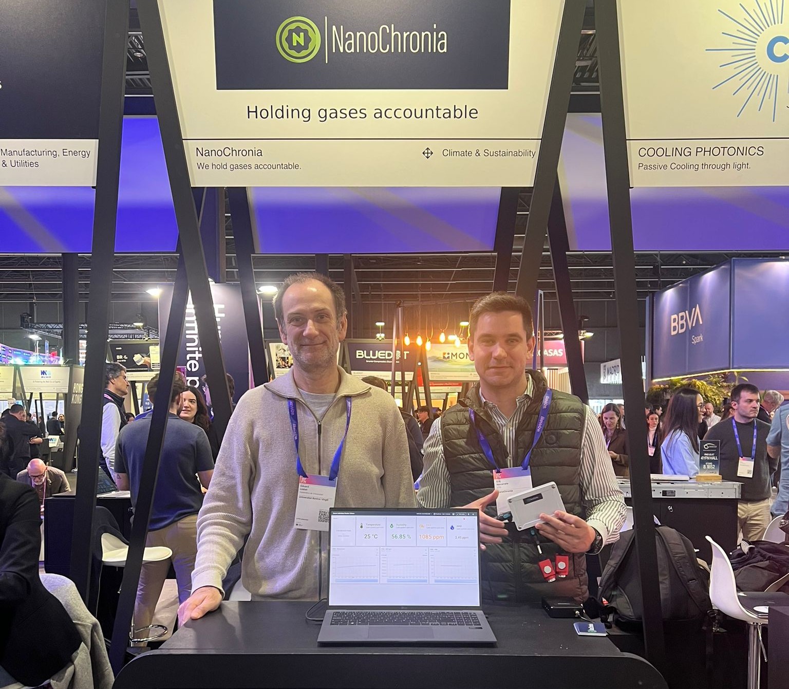 Per altra banda, Nanochronia, l’empresa derivada de la URV que produeix sensors de gas, impulsada pels investigadors del Departament d’Enginyeria Electrònica i Automàtica Èric Navarrete i Eduard Llobet, està present al congrés des de dilluns i fins dijous a l’espai de The Collider, el programa de transferència tecnològica, impulsat per la Fundació Mobile World Congress Barcelona, que connecta el talent científic amb emprenedors per crear empreses spin-off de base tecnològica. The Collider va donar suport a la creació de Nanochronia.
