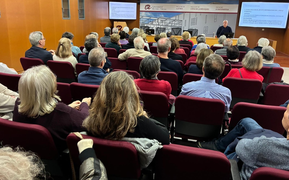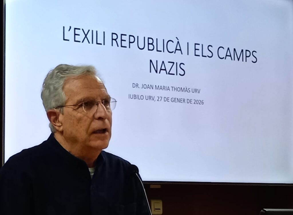 El reconegut catedràtic d’Història contemporània Joan Maria Thomàs va impartir el 27 de gener una conferència sobre l’exili republicà i els camps nazis adreçada a la comunitat Iubilo de la URV al campus Catalunya. Thomàs va commoure els assistents quan va repassar les xifres d’exiliats i els seus diversos destins. Al final de la Guerra Civil, un cop les tropes franquistes van entrar a Catalunya, en poques setmanes van marxar cap a França quasi mig milió d’exiliats, tant catalans com altres espanyols que s’havien anat desplaçant. La majoria dels exiliats van passar pels camps de concentració improvisats a les platges del Rosselló, en condicions inhumanes, i d’allà van anar a altres camps de França.